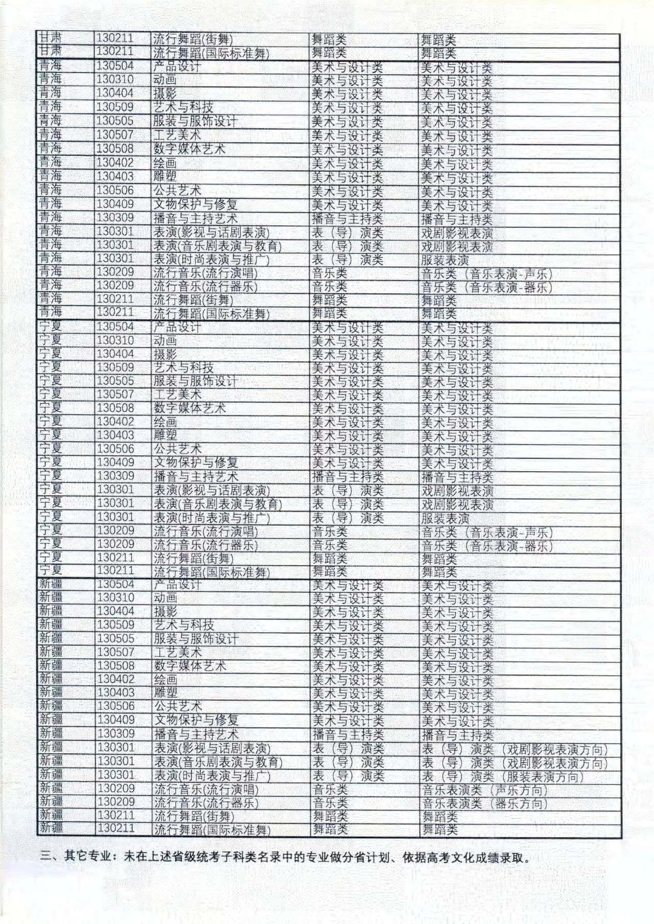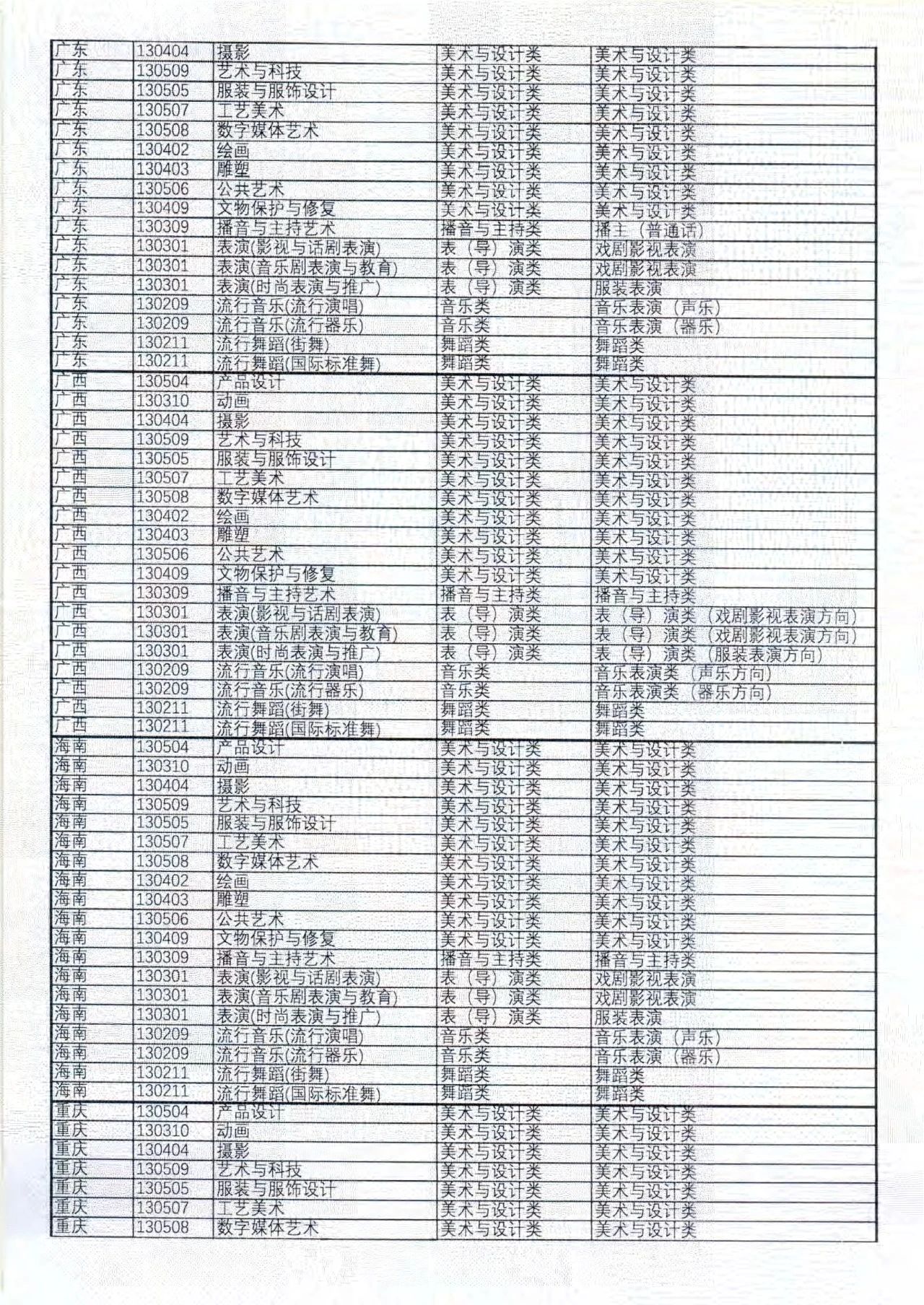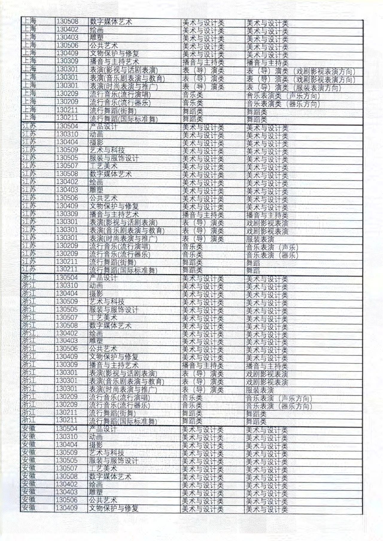 2024年上海视觉艺术学院各省级统考子科类对照表