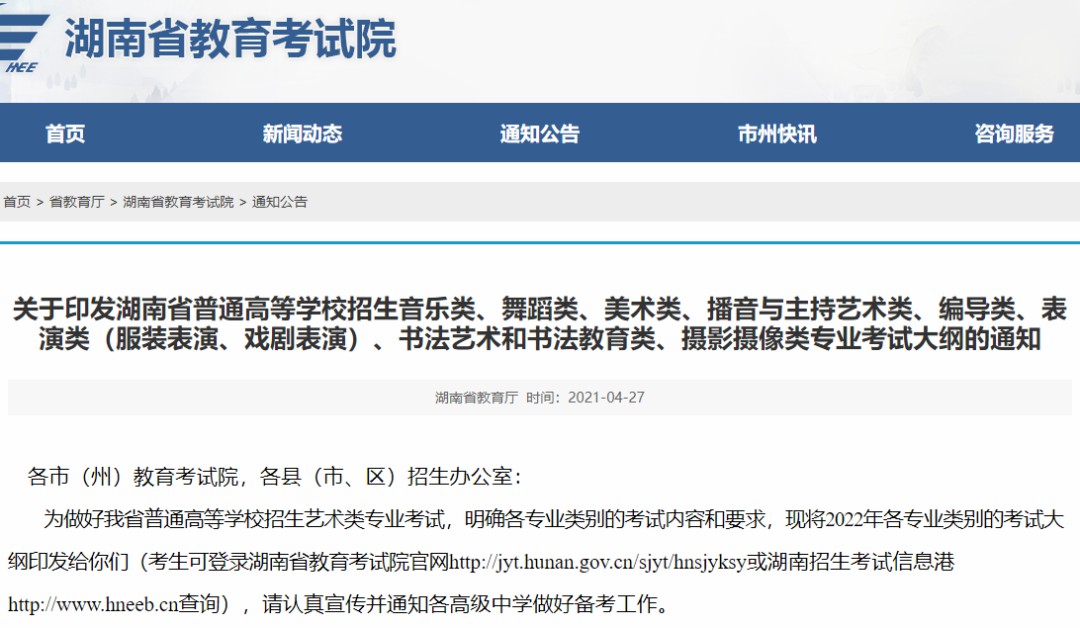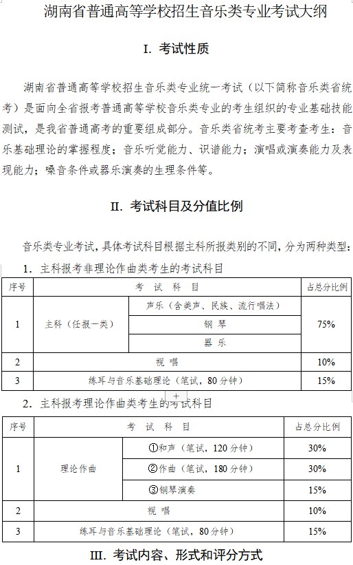 4月27日,湖南省教育考试院公布2022年普通高校招生音乐类统考大纲。