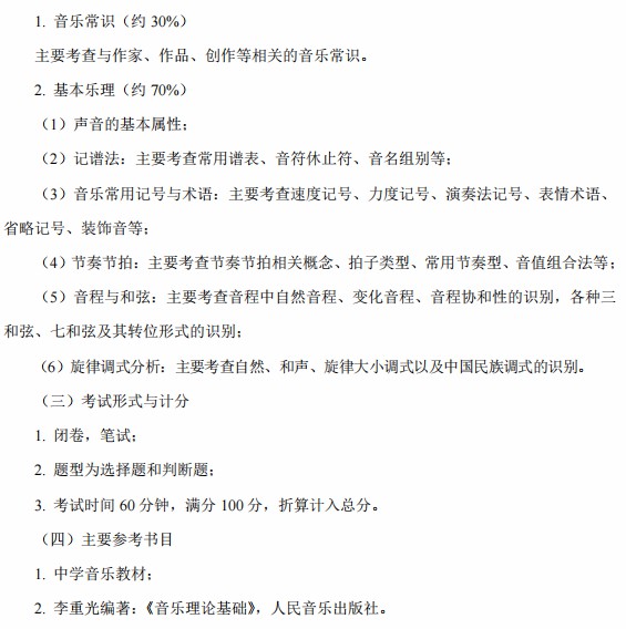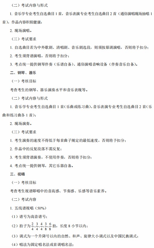 音乐学考试科目:声乐和钢琴(各1首)、视唱、练耳、乐理与音乐常识