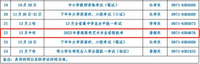 青海省2021年教育考试安排里,12月中旬进行2022年艺术类省级统考。