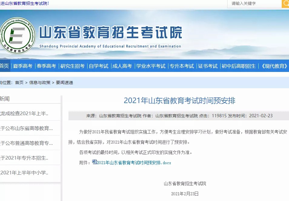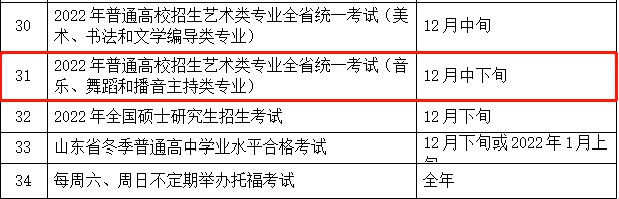 山东省教育招生考试院2021年教育考试预安排里,拟定于12月中下旬举行2022年乐类专业全省统一考试。