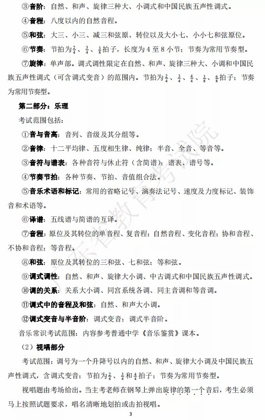 广东省2021年音乐类省级统考大纲