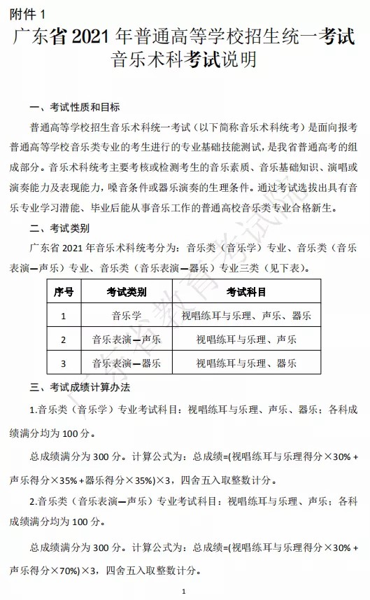 广东省已公布2021年音乐类专业省统考内容调整通知及统考大纲: