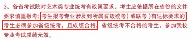 这条要求小音不多做阐述,大部分院校都要求考生报考专业涉及到省统考必须取得专业合格,才能有资格报考。2021届的艺术生,在准备院校校考的同时,也要提高对自己的要求,统考努力考,冲省排名。