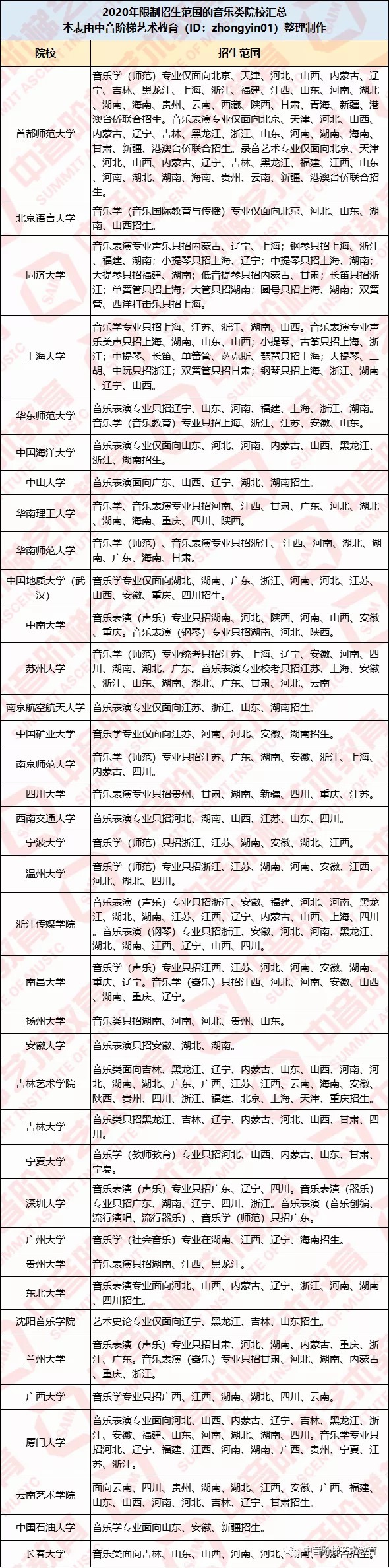 不是所有的院校都像中央音乐学院、中国音乐学院、上海音乐学院、中央民族大学、中国传媒大学等院校面向招生的。有的院校仅面向部分省份招生,还有的不同专业方向,招生省份也不相同。