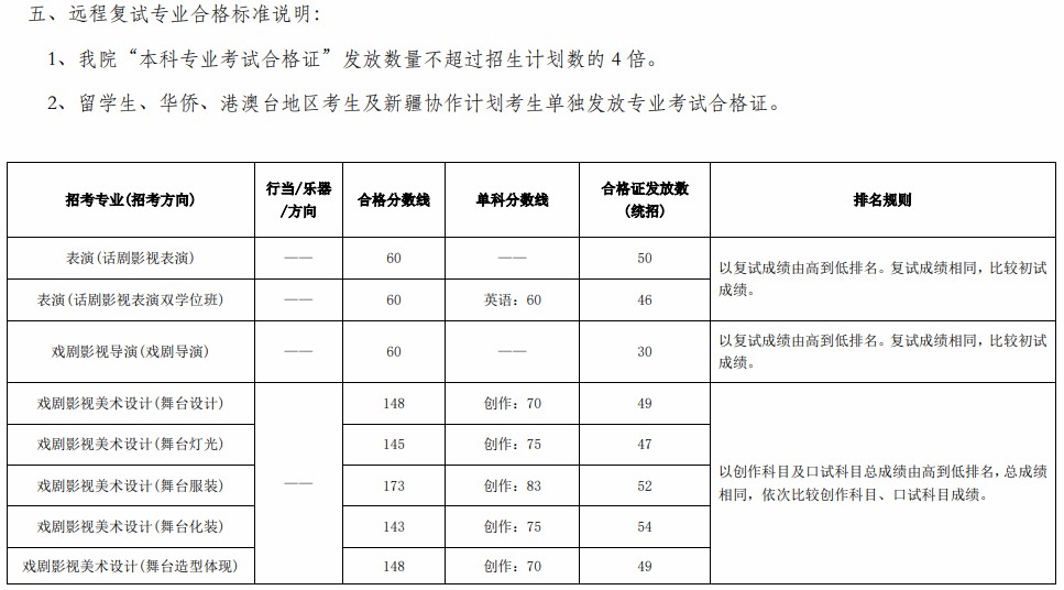 1.中央戏剧学院2020年复试合格标准