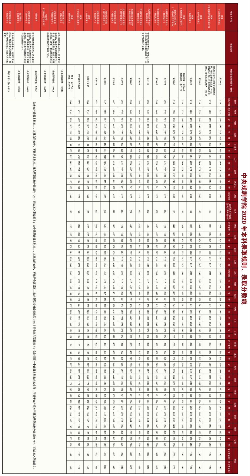 2.中央戏剧学院2020年录取原则、分数线