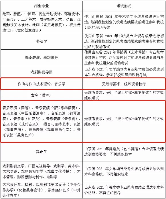 山东考生:作曲与作曲技术理论、音乐学专业现场考;音乐表演专业线上初试+现场复试