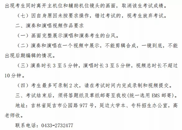 (一)因条件有限无法提供录制的作品或无法实现网络视频笔试的考生,请在1月8日15:00前联系我办,我办将与考生所在省份考试院积极沟通,保障考生能顺利完成考试。
