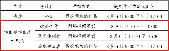 (1)歌曲创作(网络视频笔试)。考生限时答题,时长60分钟。