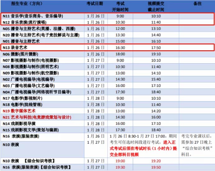 南京传媒学院(原中传南广)2021年音乐类网络考试时间
