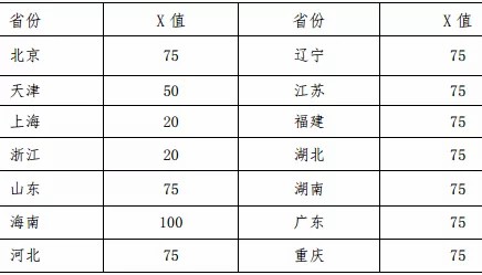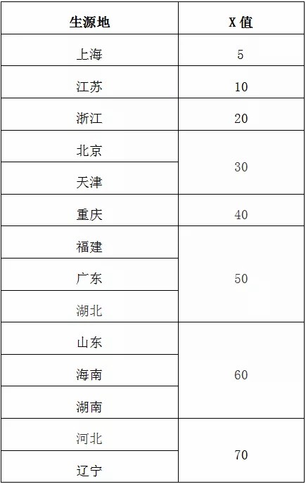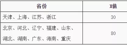 2.对实行高考综合改革的省区,要求高考成绩达到当地省级招生考试部门确定的相关较低录取控制参考分数线上X分及以上,具体X值如下表: