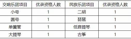 招生项目:唢呐、扬琴、圆号、小提琴