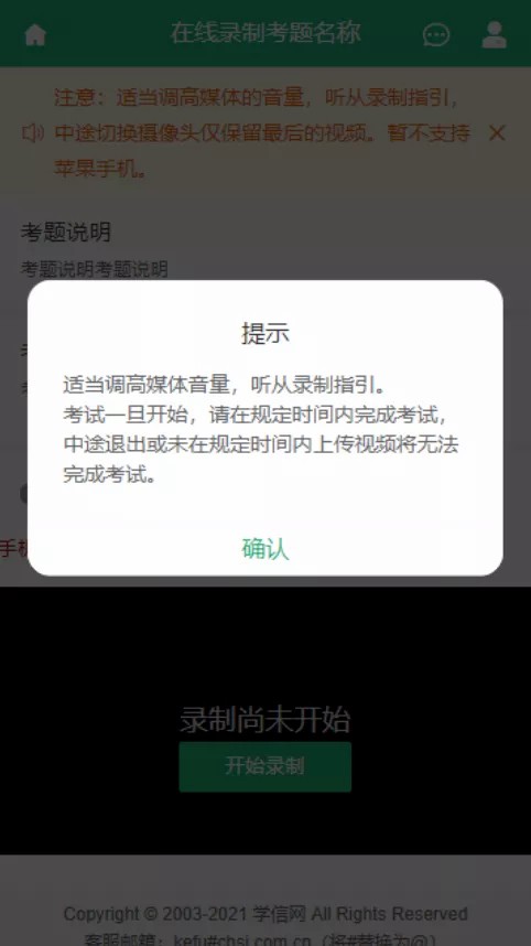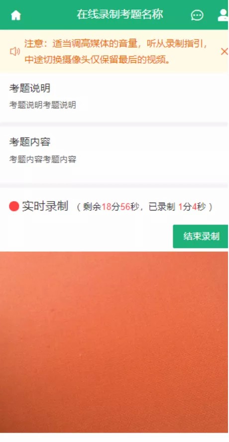 注意:对于限单次录制的,考生录制完成后系统自动提交,请考生慎重操作。