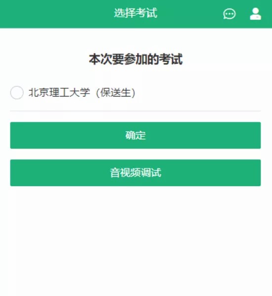实人验证通过后,请认真仔细阅读系统须知!点击【下一步】可查看考生所报考的高校及考试信息。考试之前需要先调试设备。点击【音视频调试】按钮,即可进入调试界面。