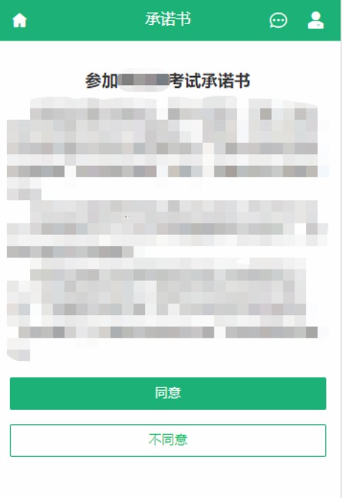 实人验证完毕后,进入考试书阅读界面。请考生认真仔细阅读并点击【同意】按钮。