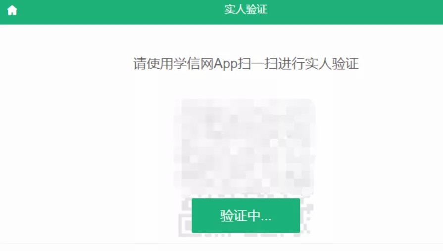 考生使用移动设备上的学信网App右上角的扫一扫功能,扫描电脑页面上的二维码,此时电脑页面显示“验证中”状态,考生在移动设备的学信网App中按照提示进行实人验证操作。