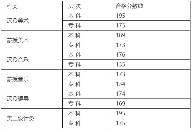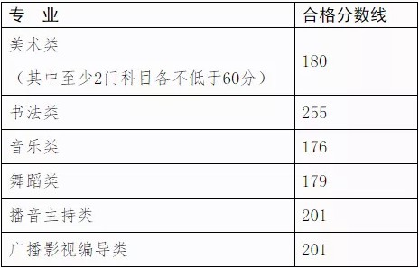 美术类专业统一考试合格分数线
