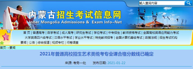 2021年自治区普通高校招生美术类、音乐类专业统一考试合格分数线确定,现公布如下: