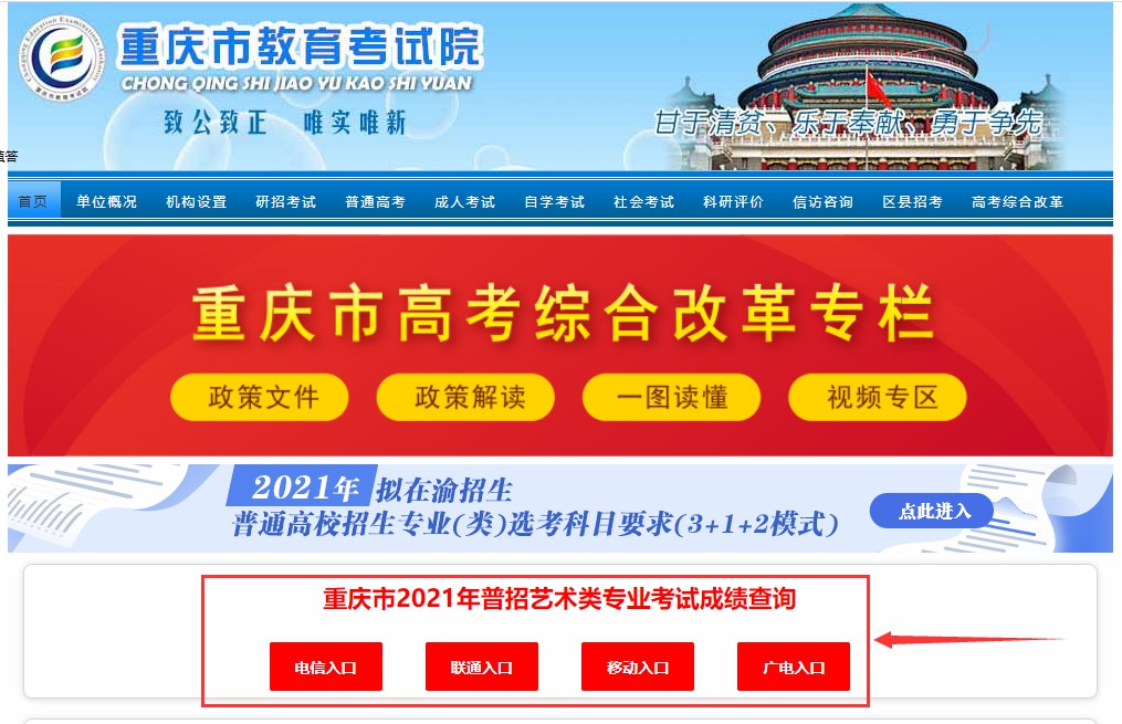 重庆市2021年普通高等学校招生艺术类各类别校考资格线: