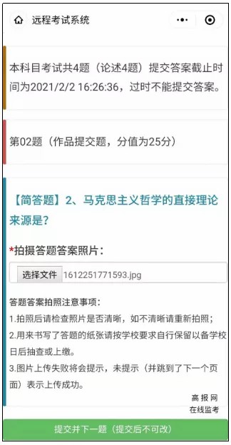 7.每一科目答题完毕后,将答案用主机位手机拍照上传,答案上传完毕后无法撤回。每科目考试的时间包含了答题拍照、上传的时间。考试时间结束时,系统将自动关闭,考生务必合理安排时间,在考试时间结束前完成拍照上传工作。