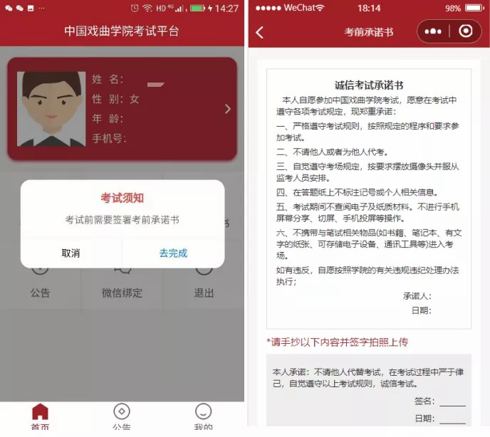2.考生提前仔细阅读《中国戏曲学院2021年本科招生远程面试操作说明》、《中国戏曲学院2021年本科招生远程笔试操作说明》。考生通过微信扫描中国戏曲学院远程考试小程序二维码登录系统进行考试。