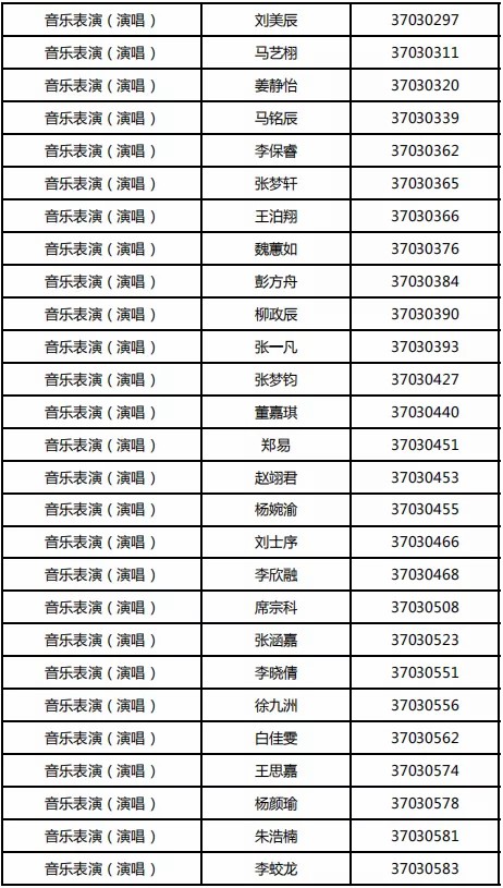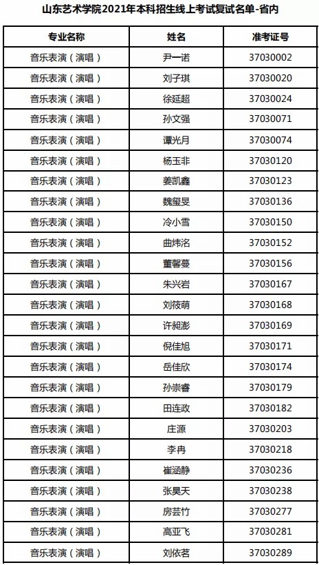 山东艺术学院2021年山东省内线上复试名单