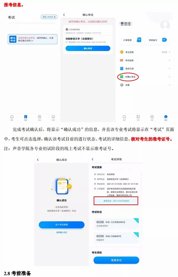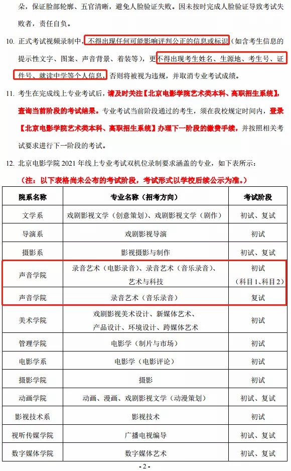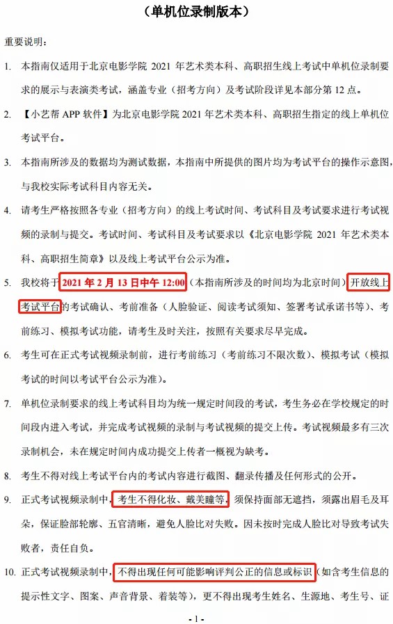 1.按照《北京电影学院2021年艺术类本科、高职招生简章》的规定,我校专业考试线上考试平台将于2021年2月13日中午12:00开放。届时请考生登陆线上考试平台,完成确认考试、考前准备(人脸验证、阅读考试须知、签署考试书等)、考前练习、等步骤,为正式考试做好相关准备。Mqg音乐培训_音乐艺考培训学校-