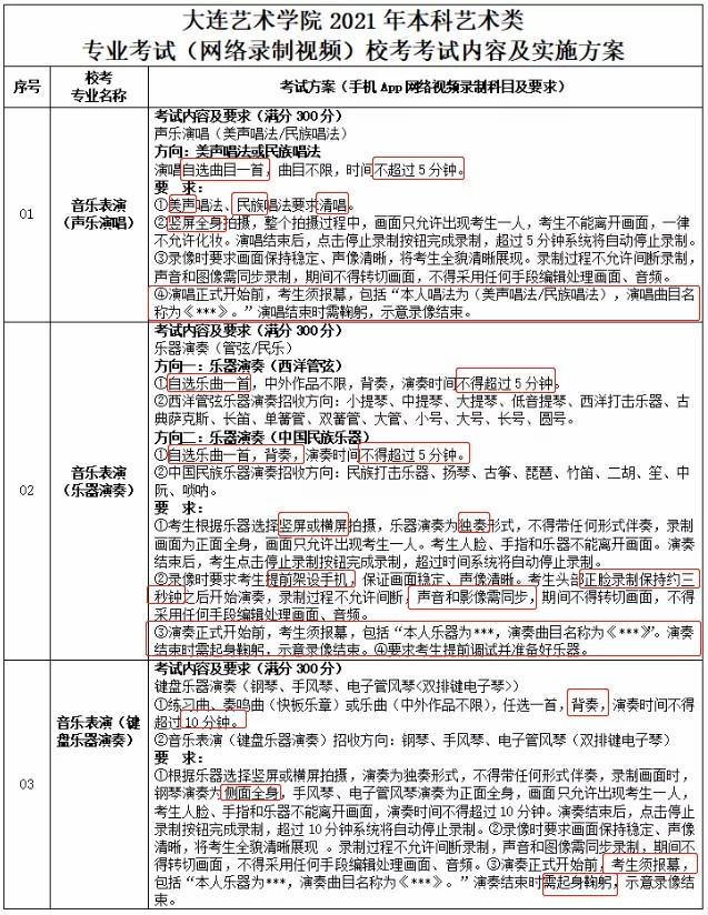大连艺术学院2021年音乐类校考内容及方案