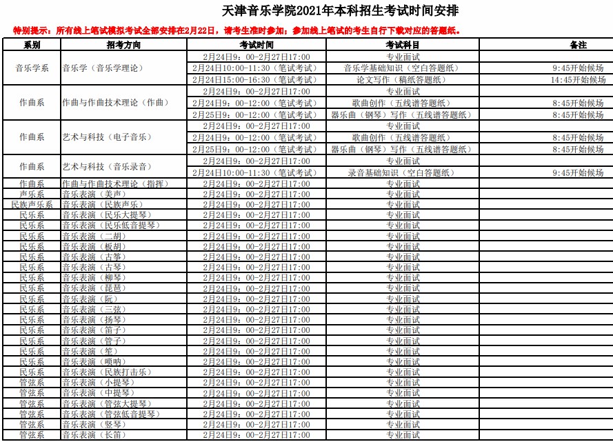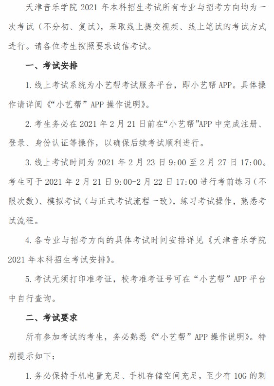 天津音乐学院2021年本科招生考试须知
