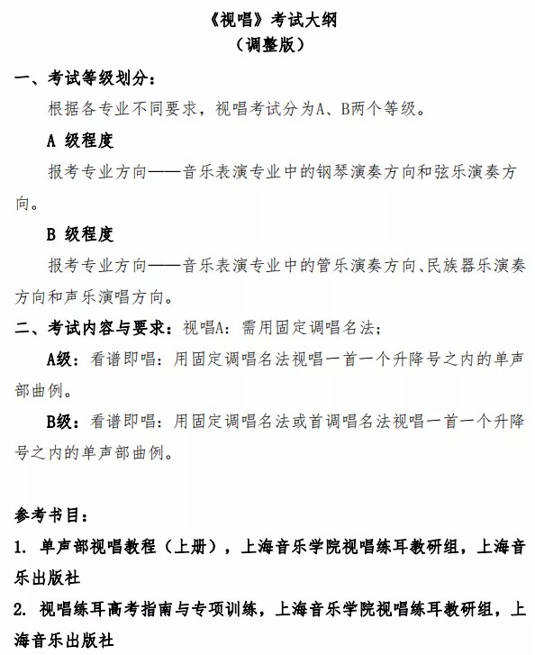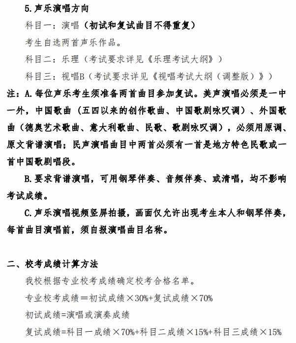 3.校考成绩计算方法相应调整,取消科目三听音考试,仅计算视唱成绩;