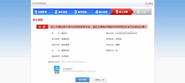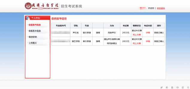 注意:请确认收款方为武汉音乐学院,金额与系统缴费金额一致后再行缴费。