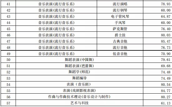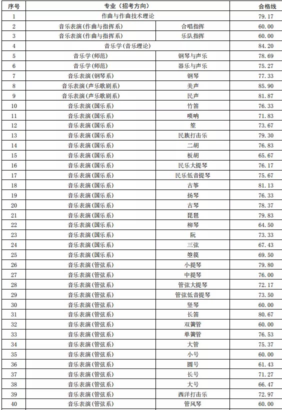 浙江音乐学院2021年本科专业校考初试合格分数线