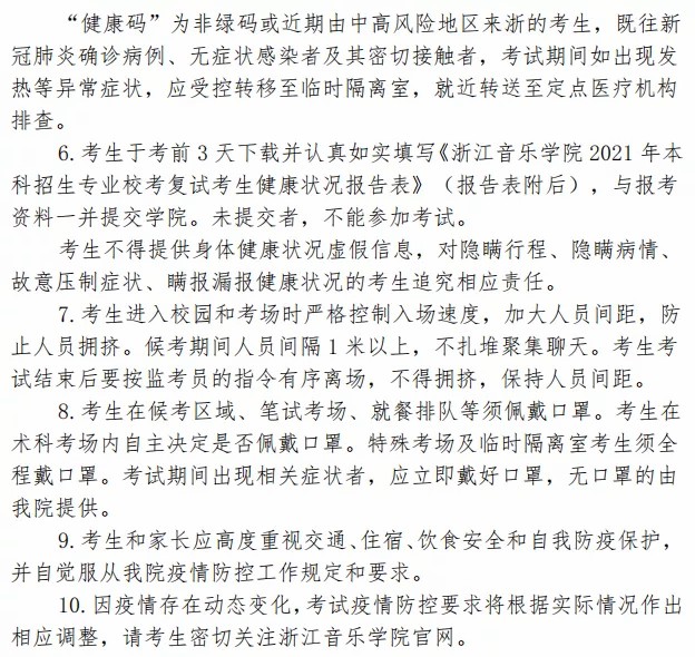 浙江音乐学院2021年本科复试安排