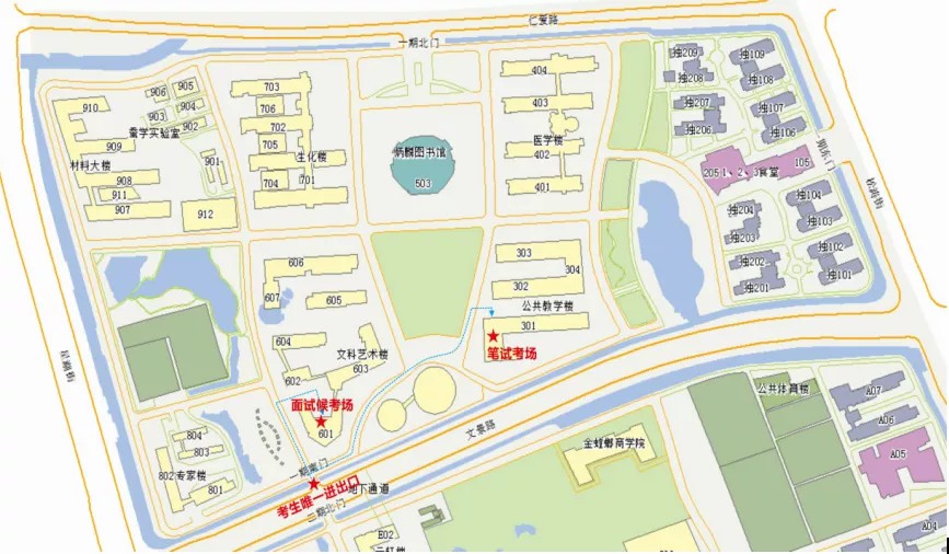 5.苏州大学独墅湖校区一期南门(苏州市工业园区文景路)为出入口。请考生务必从该出入口进出,并积极配合健康筛查,不得因佩戴口罩而影响身份识别。送考人员、送考车辆一律不得进入,请考生务必提前做好出行准备。