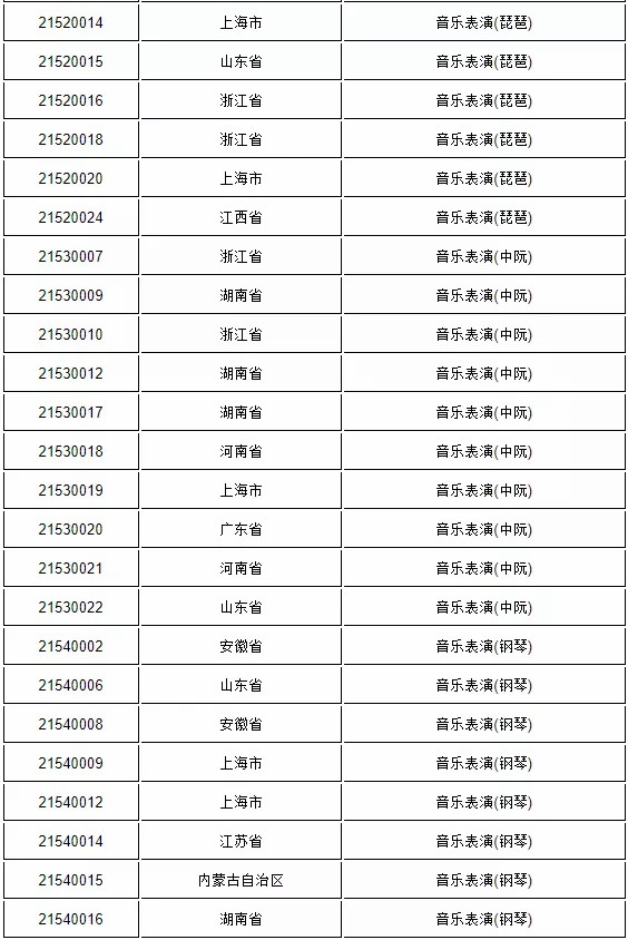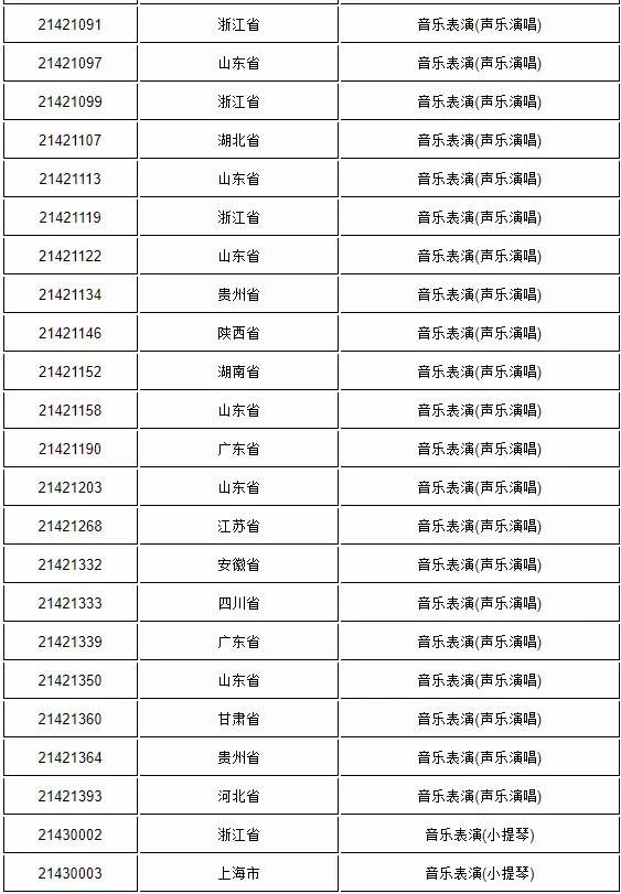 附件2:上海大学2021年音乐表演专业进入复试名单