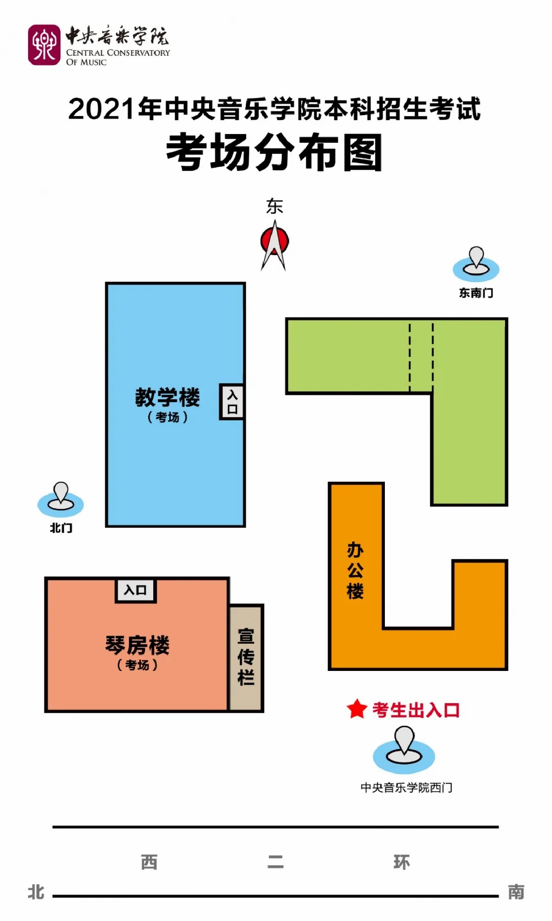 1.考生应按本人考试安排从中央音乐学院西门入校检测,除个别招考方向的钢琴伴奏人员外,陪同人员和车辆不得进入学校。排队进入考场前,需保持安全距离有序排队,并全程佩戴口罩。考生及钢琴伴奏人员入校检测包括①考生本人准考证 ②有效身份证件 ③7日内核酸检测阴性报告 ④北京健康宝绿色健康码 ⑤佩戴好一次性医用外科口罩 ⑥经测量体温低于37.3℃后,方可进入考场参加考试。