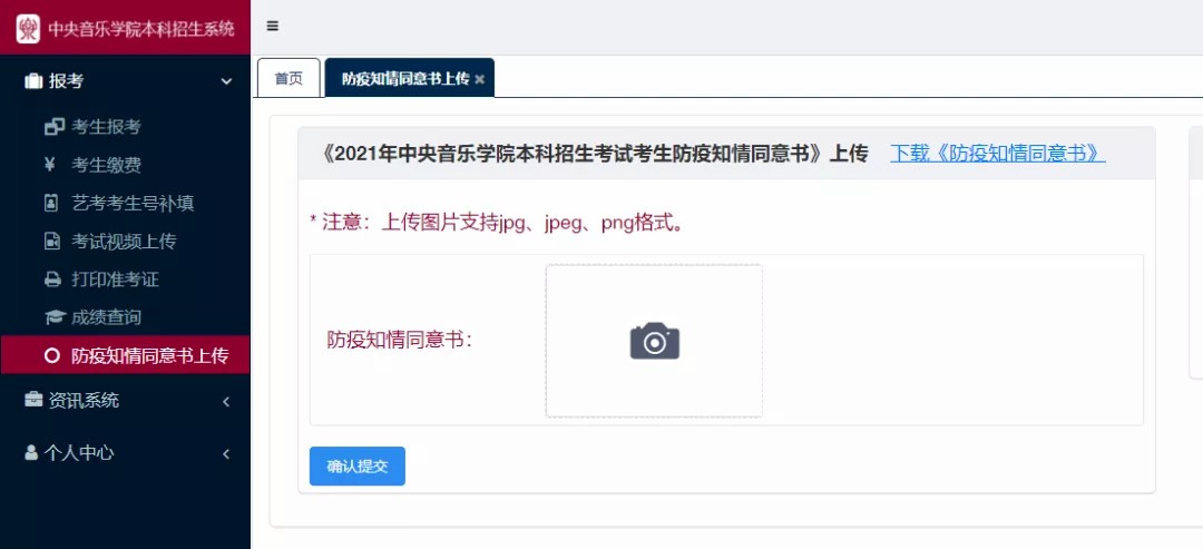 中央音乐学院2021年本科考生上传《考生防疫知情同意书》的通知
