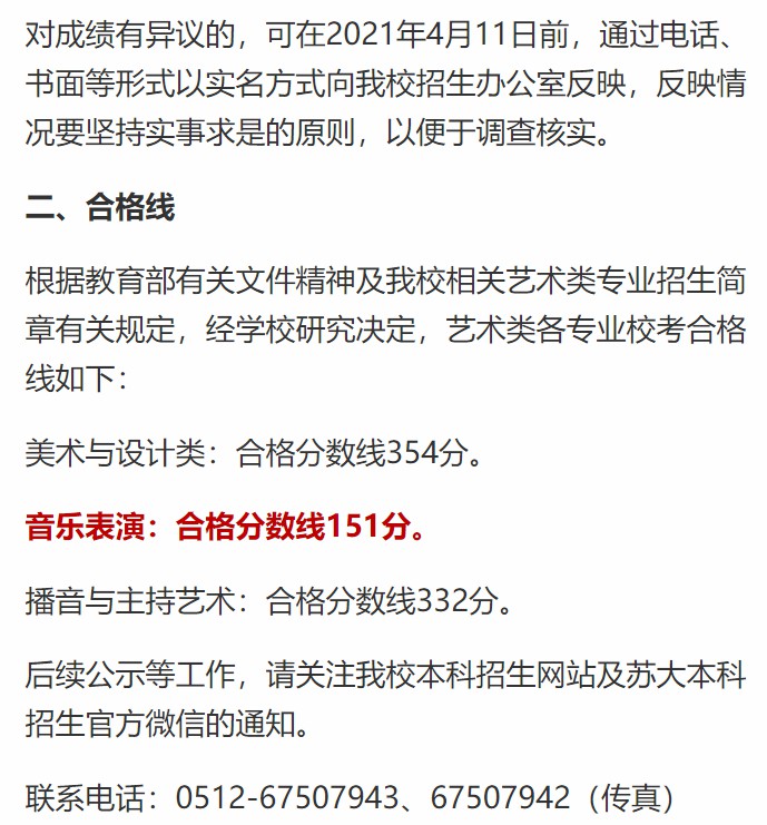 苏州大学2021年音乐类校考成绩及合格线公布