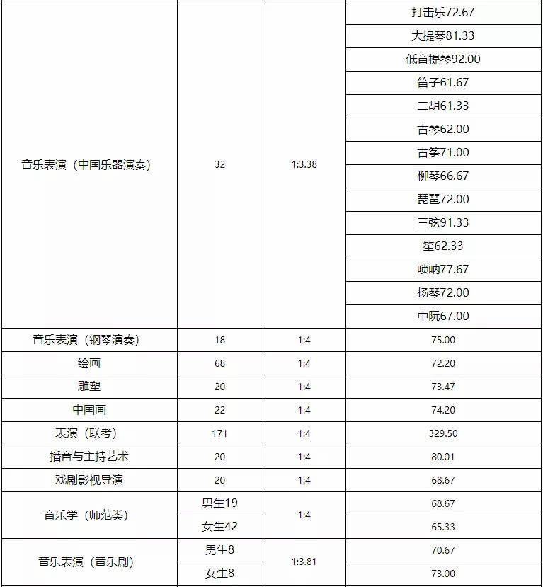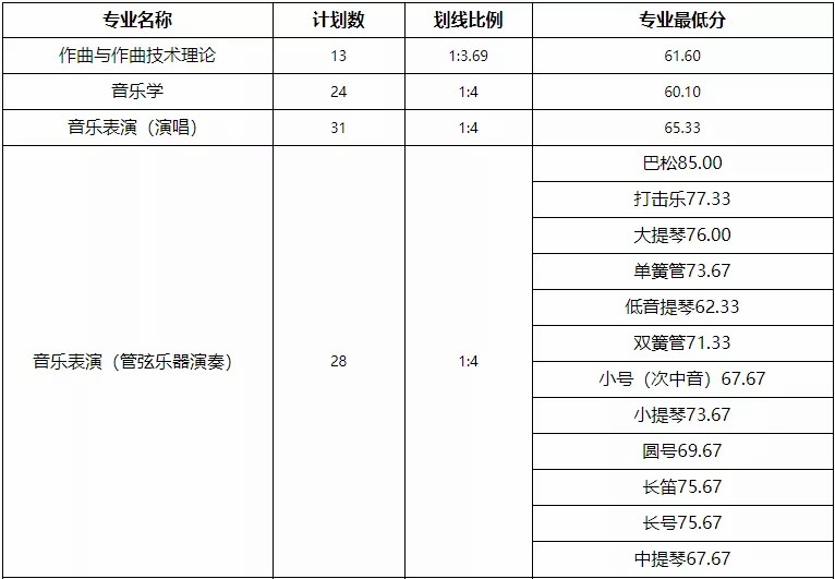 (2)按照乐器种类或性别单列招生计划的专业,分别按照乐器或男女计划数单独划定合格线。