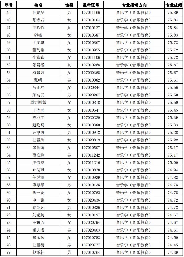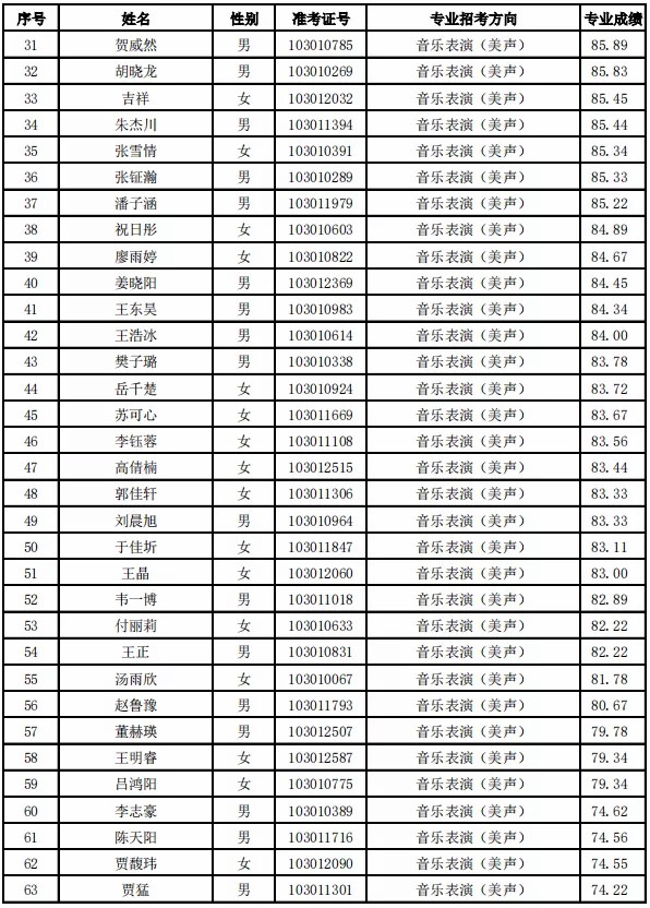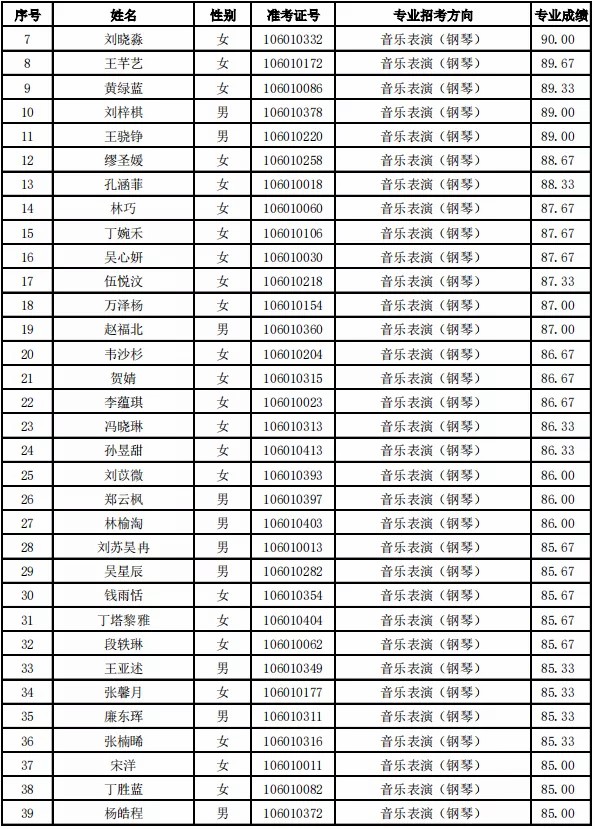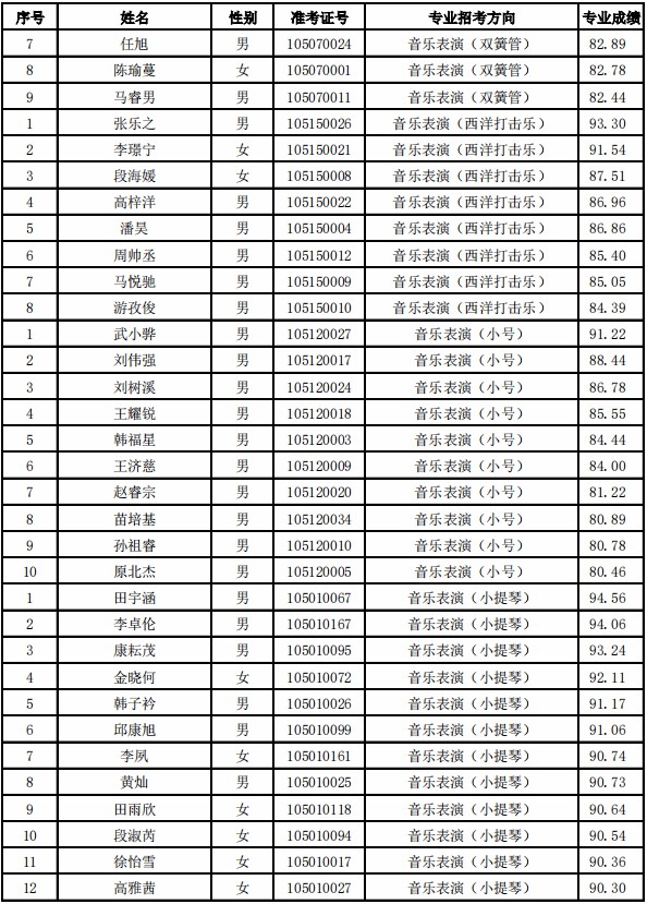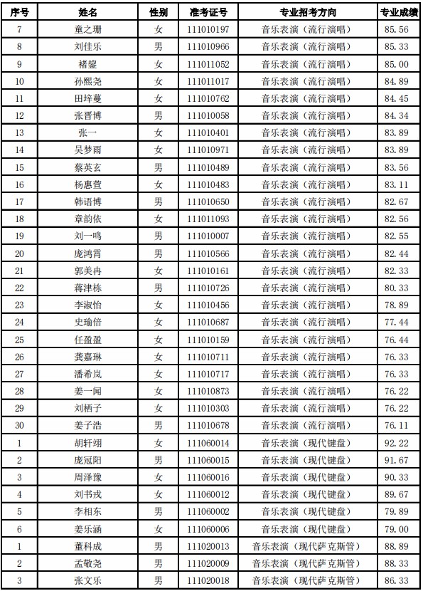 根据《天津音乐学院2021年本科招生简章》要求,现将天津音乐学院2021年本科招生专业校考合格名单公布如下。我院不再寄发专业考试合格证,考生也无需另行打印。如有疑问,请于4月21日前与招生办公室取得联系,逾期不再受理相关事宜。Dge音乐培训_音乐艺考培训学校-