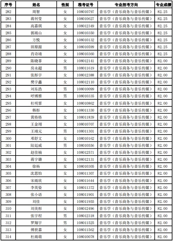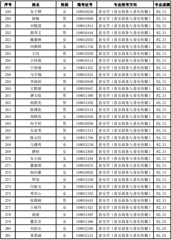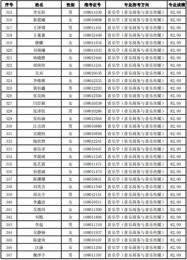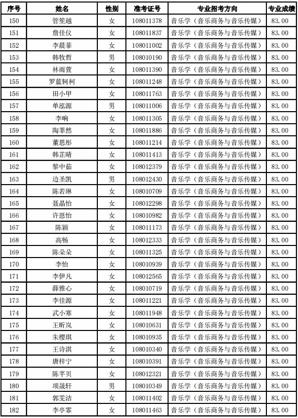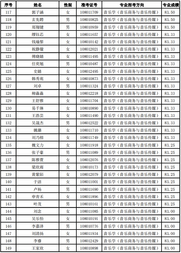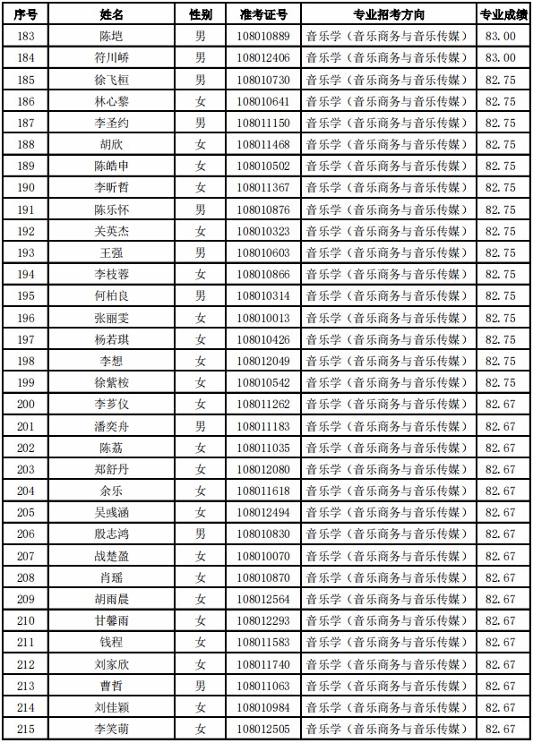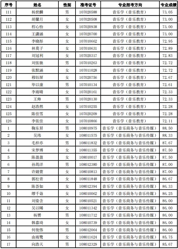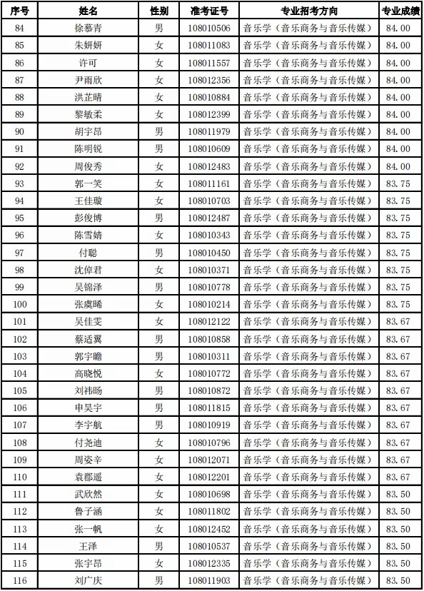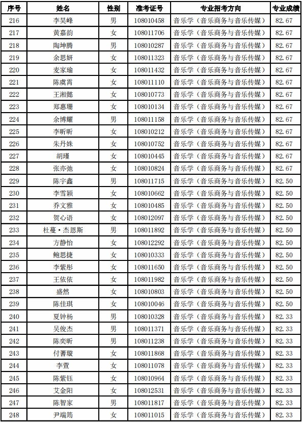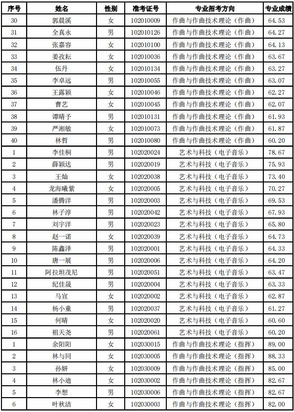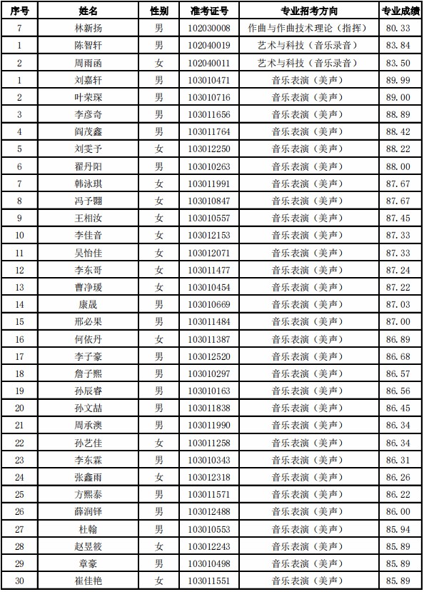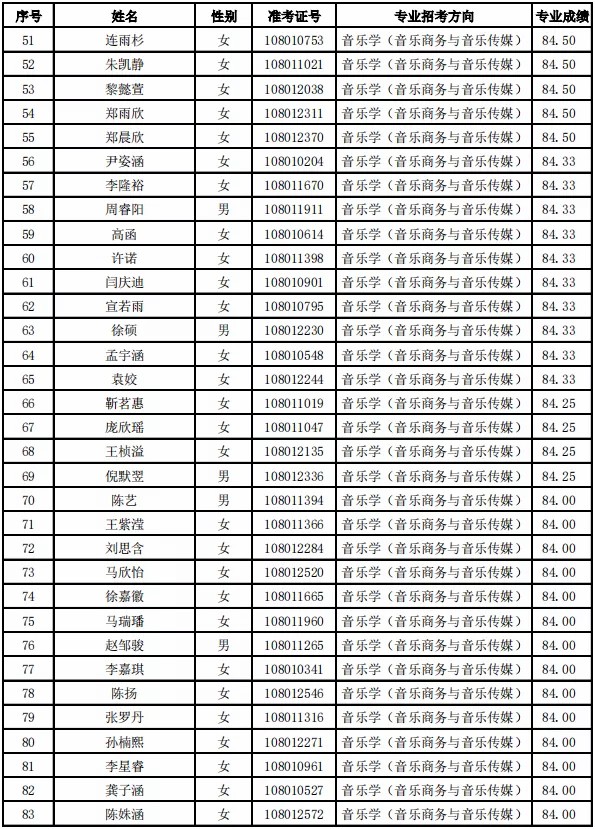 天津音乐学院2021年本科专业合格名单