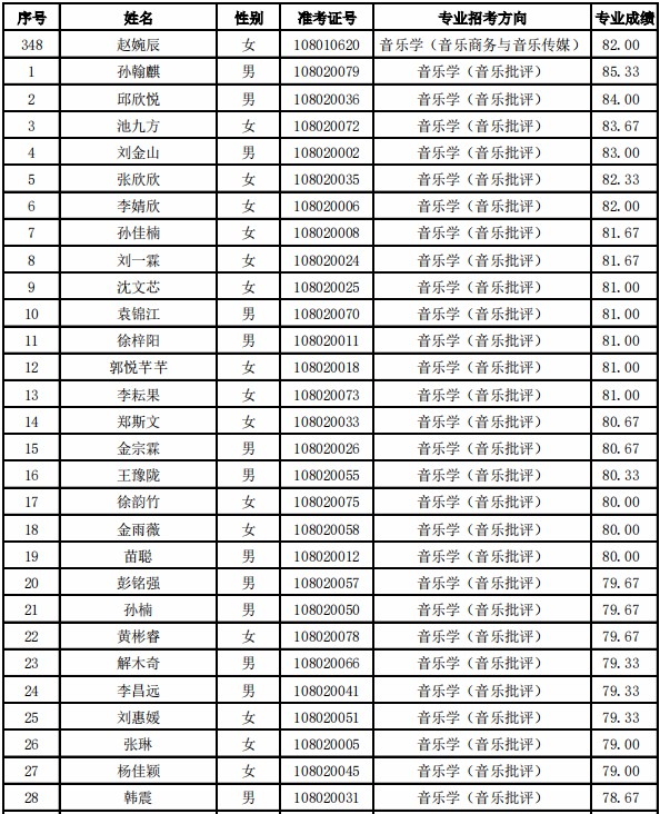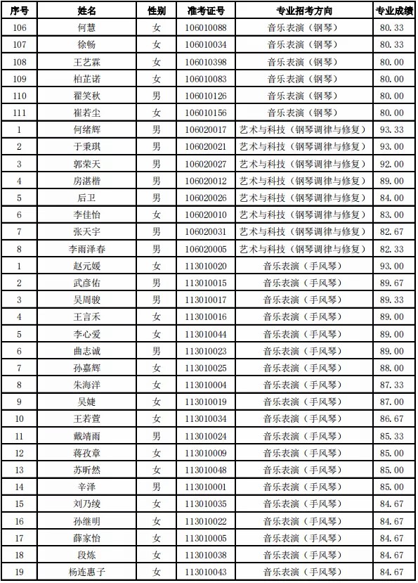 天津音乐学院2021年本科专业合格名单公布