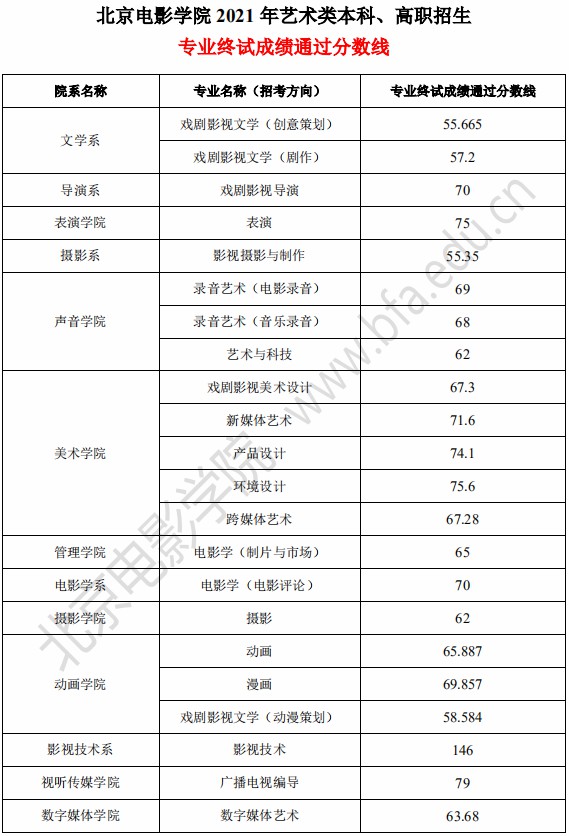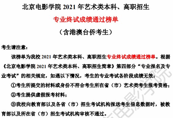 1.各专业录取原则以《北京电影学院2021年艺术类本科、高职招生简章》以及阳光平台公布的《北京电影学院2021年本科、高职招生章程》为准。