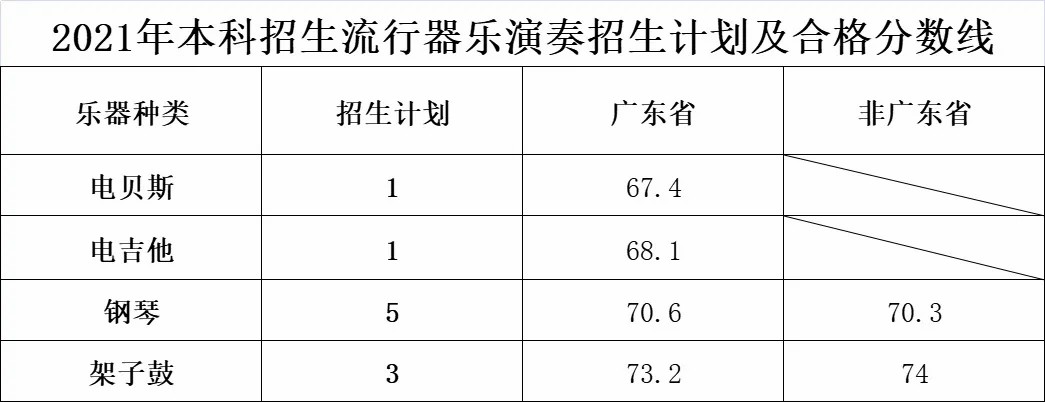 2021年音乐教育(广东省内)使用广东省统考成绩录取,艺术管理无需校考,安排在普通本科批次录取。
