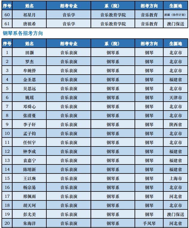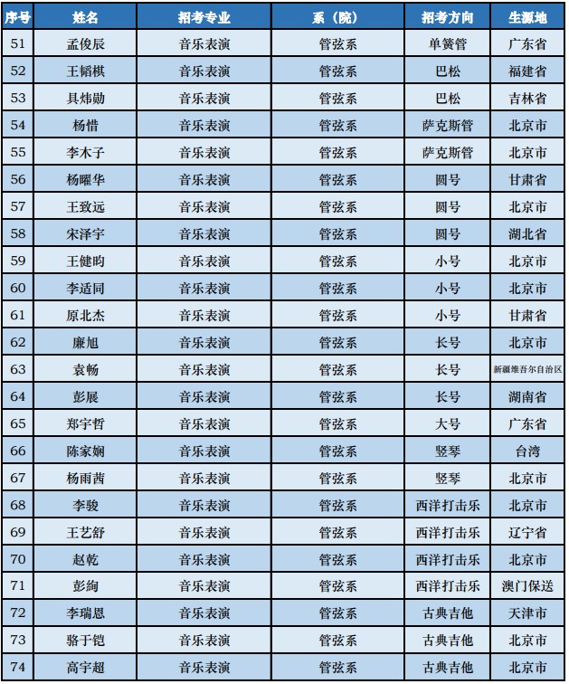 其中,音乐教育2020年有单独的文化录取线,今年与音乐学、音乐艺术管理、音乐治疗统一合并到音乐学专业,统一设线。分数线变化与央音今年的录取原则有关。