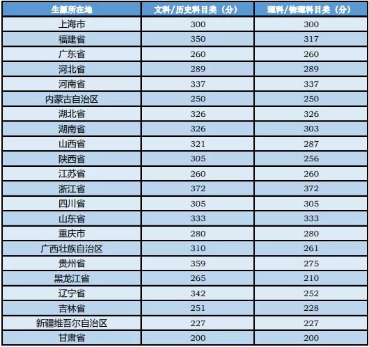 音乐学、音乐艺术管理、音乐治疗2021年录取原则为文化课成绩不低于生源所在省2021年本科艺术类录取控制分数线的130*,按专业成绩、文考成绩各占50*的综合分,由高到低依次录取。2020年录取原则为文化课成绩不低于生源所在省2020年本科艺术类录取控制分数线的150*,按专业成绩、文考成绩各占50*的综合分,由高到低依次录取。今年文化录取线划分由艺术类省控线的150*下降至130*。