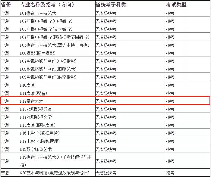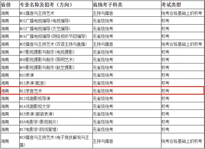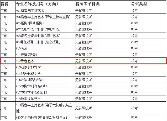 南京传媒学院2022年艺术类校考专业与各省级艺术类统考子科类对照