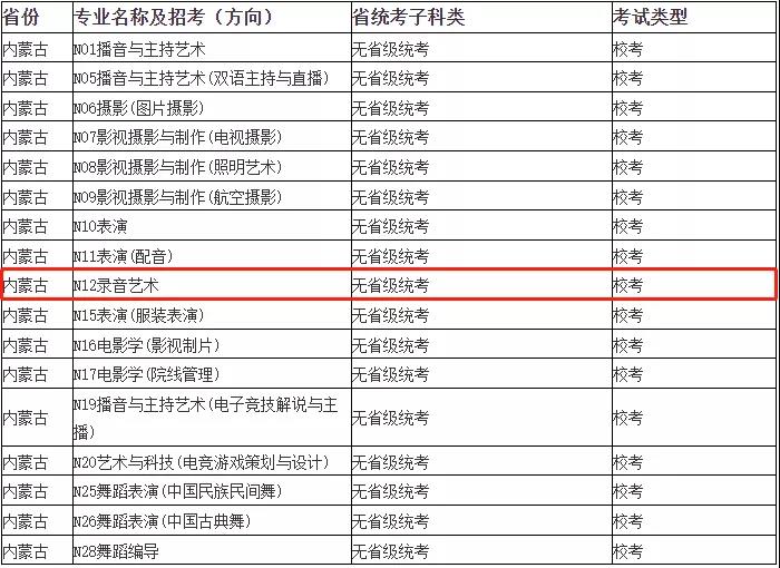 以下未列出的艺术类专业无需参加校考,承认生源省份相应省级统考成绩。高考填报志愿时,根据学校在该省的艺术类专业及计划情况填报志愿即可。
