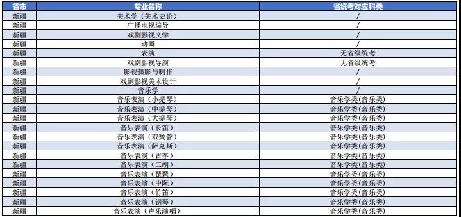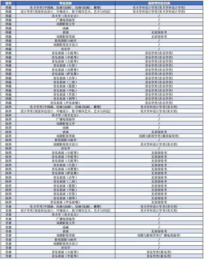 上海大学2022年艺术类本科专业对应各省统考科类要求